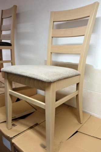 Jídelní židle z masivního buku, moření Dub sonoma, látka světle hnědá. Rozměry: v.93/hl.sedu 43/v.sedu 47/š.sedu 46cm, nosnost 130kg. IHNED K ODBĚRU 4 KUSY!!! DOPRODEJ !!!